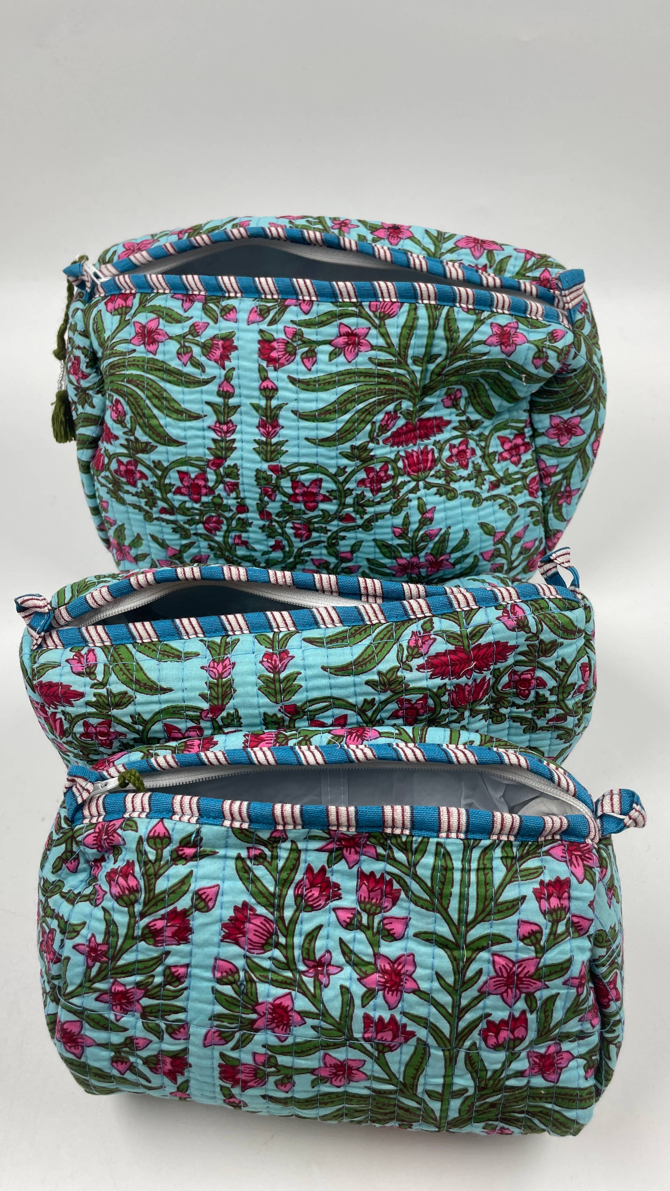 Aqua Blue cotton set of 3 wash bags