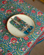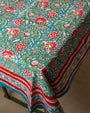A gorgeous tablecloth made with 100% cotton fabric is a must have to enhance the decor & ambiance of your dining table or side table It features an elegant Indian floral block print design in various colours and shades contrasting on a nice background with an extraordinary border pattern all around