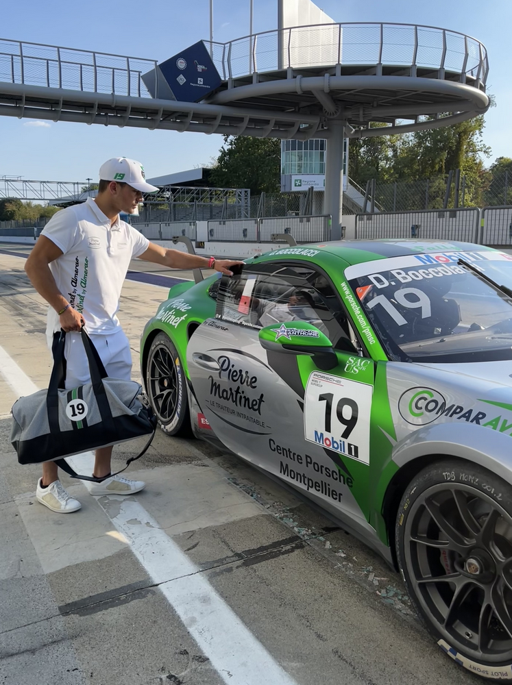 Light gray travel bag designed in collaboration with influencer Dorian Boccolacci.