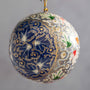 A beautifully hand-painted 3" (7cm) bauble decoration. Hand-crafted using traditional methods with paper mache, and painted by skilled artisans in Kashmir, India. These decorations are all hand-made from start to finish, and will of passed through many different hands on its journey.