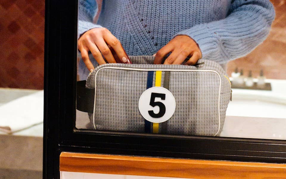 5 Eco responsible toiletry bag for man in light grey canvas