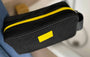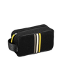 Black Toiletry Bag with white, yellow, grey leather stripes