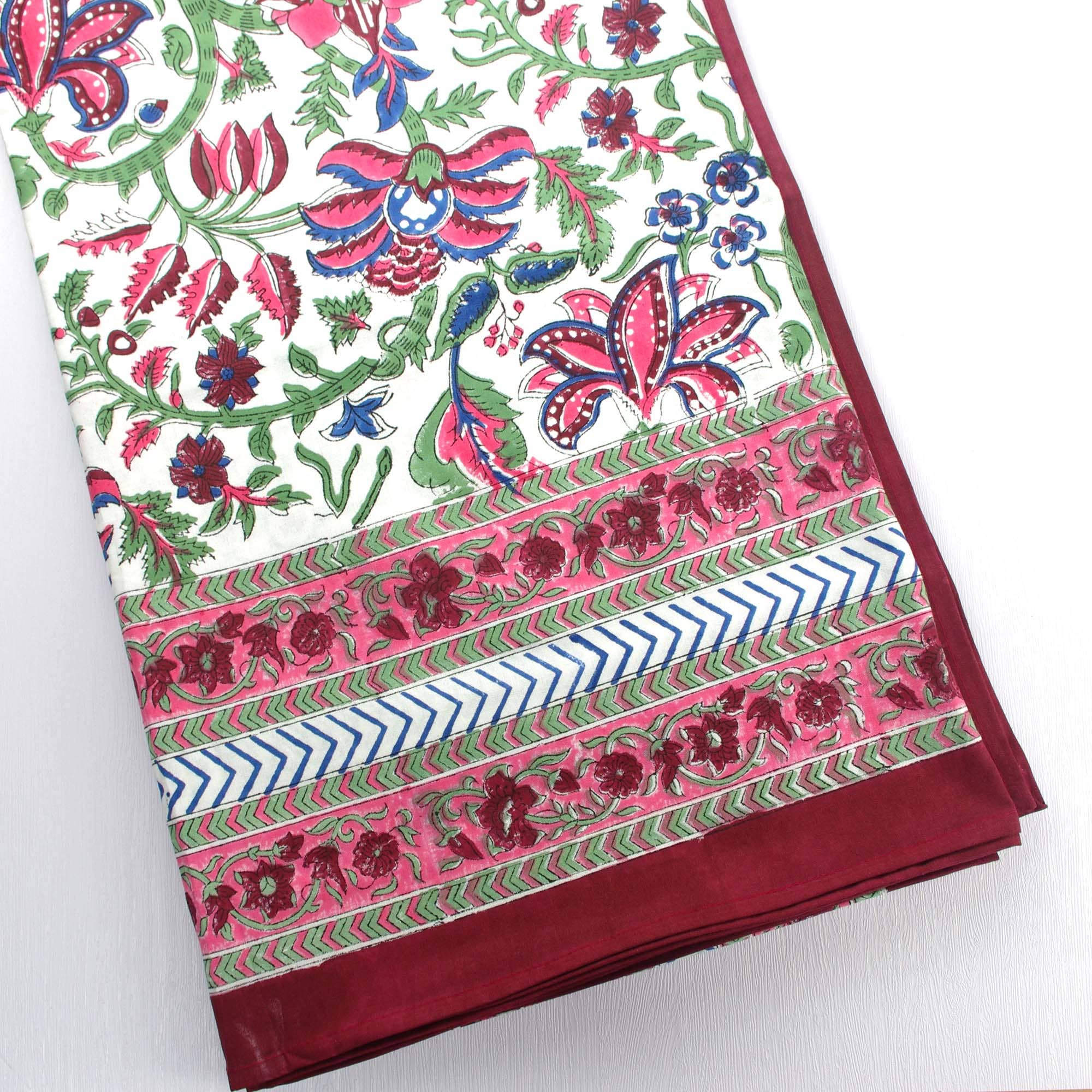 Block Printed Rectangular Tablecloth - Pink Green Floral