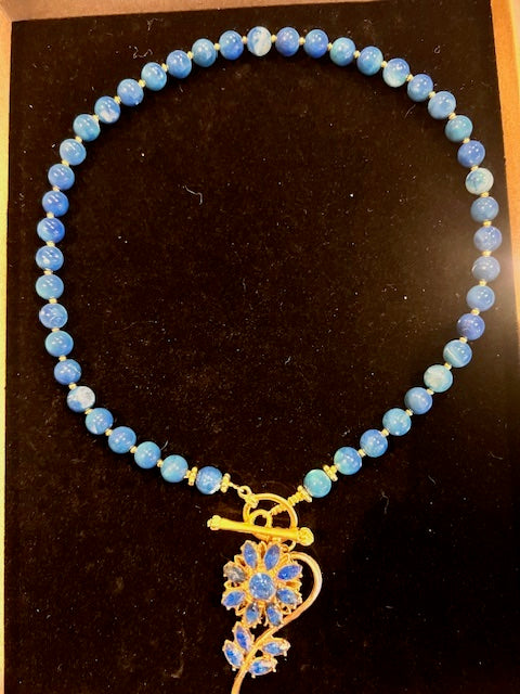 Blue Agate & Crystal Flower Necklace