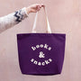 A perfect gift for students, teachers, mums, and book & snack lovers everywhere. This hand illustrated 'Books & Snacks' design has been printed in off-white on sturdy plum purple canvas.