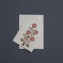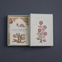 The notecards and envelopes are held together with a cotton paper belly band and are neatly presented in a keepsake box with a matching hand block printed lid.