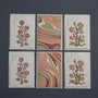 Each set features 6 beautiful, die-cut notecards and envelopes, handcrafted by artisans in India, using traditional techniques of wood block printing and hand marbling.