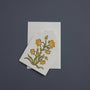 The notecards and envelopes are held together with a cotton paper belly band and are neatly presented in a keepsake box with a matching hand block printed lid.