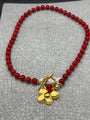 Cherry Quartz Necklace With Gold Heart Charm - Default Title