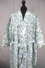 Cotton Kimono Dressing Gown - Blue Flowers On White
