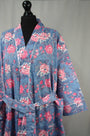 Cotton Kimono Dressing Gown - Pink Flowers On Grey