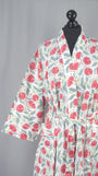 Cotton Kimono Dressing Gown - Red Dandelion On White