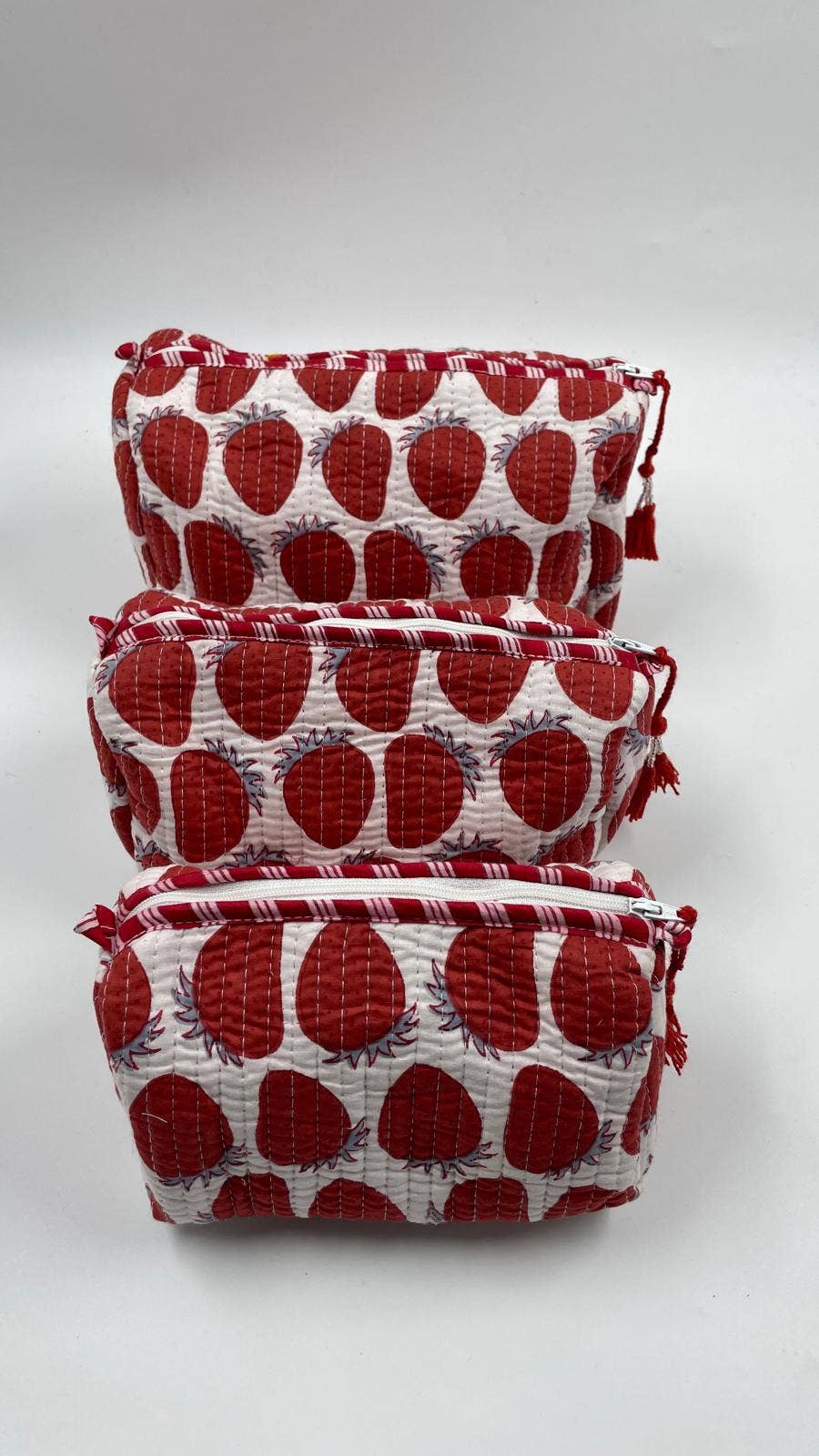 Cotton quilted Strawberry design wash bag set of 3 small medium & large