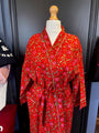 These handmade cotton kimono gowns come in a variety of colors and styles so that they'll fit any occasion. Specifications: Fabric: Hand Screen Printed Fabric Sizes: One size will fit sizes U.K 8 to 16 Length: 50 inches (127 Centimeter) Bust Around Size: 48’’ Inches Sleeves Length: 14" Inches Shoulder: 8" Inches 2 Front Side Pockets, Belt and Loops and detailed with a contrast coloured piping. Care: Cold Delicate Machine or Hand Wash Product colour may look slightly different from the picture due to the limitations of the camera and individual monitor settings.