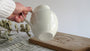 Indulge in the cozy comforts of winter desserts with our elegantly thrown porcelain custard jug, expertly crafted to hold approximately a pint of creamy custard, perfect for accompanying your warm winter treats. This jug combines functionality with a timeless aesthetic, featuring an unglazed foot that elegantly reveals the natural beauty of the white porcelain. Each piece is thoughtfully stamped with our maker's mark, signifying its artisanal quality and origin. As these jugs are individually made, they each possess their own unique character, with slight variations in shape and delicate nuances in color that highlight the individuality of the material and our dedication to handcrafted processes. More than just a serving vessel, this custard jug is a work of art, bringing a touch of bespoke elegance to your winter dining experiences.