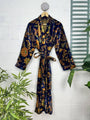 This luxurious cotton velvet robe in a deep blue and gold is a wonderful gift or treat for yourself