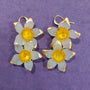 Double White and Gold Acrylic Flower Earrings