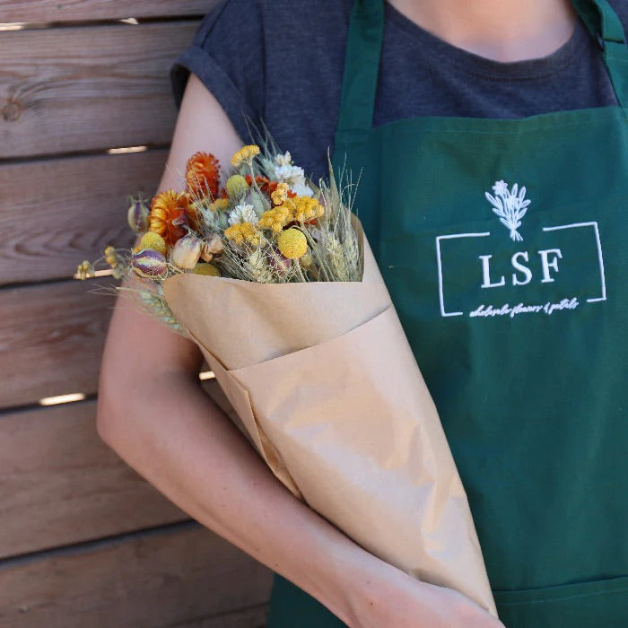Handmade Autumnal Dried Flower Bouquet with stunning orange and yellows tones.