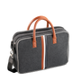 Conceived as a timeless design, this bag features gray fabric and a clay, white and blue leather pattern.