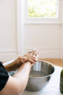 Continue to massage between fingers and knuckles whilst rinsing with hot water.