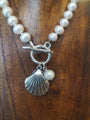 Freshwater pearl necklace with silver shell charm