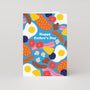 Beans. Bacon. Eggs. Mushrooms. Sausages. Hash Browns. Black Pudding. This Father's Day card is serving up a Full English Breakfast, a favourite for countless dads. The delicious illustrated breakfast foods are scattered across the bright blue background of the Father's Day greeting card with its simple "Happy Father's Day" caption standing out in the middle. The inside of the greeting card is blank for a personal message to be added.