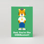 The coolest tiger ever is illustrated on the front of this colourful greeting card, wearing a stylish outfit complete with a tiny beanie and relaxing above the Dad card's caption "Dad, You're The GRRReatest!!"