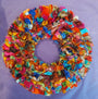 A beautiful rag wreath made from sari offcuts. Guaranteed to add colour to any occasion!