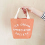 A bright and cheerful little canvas tote bag for members of the best society ever, the Ice Cream Appreciation Society!