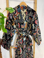 Black Luxurious Printed Velvet Robe, fully lined - Default Title