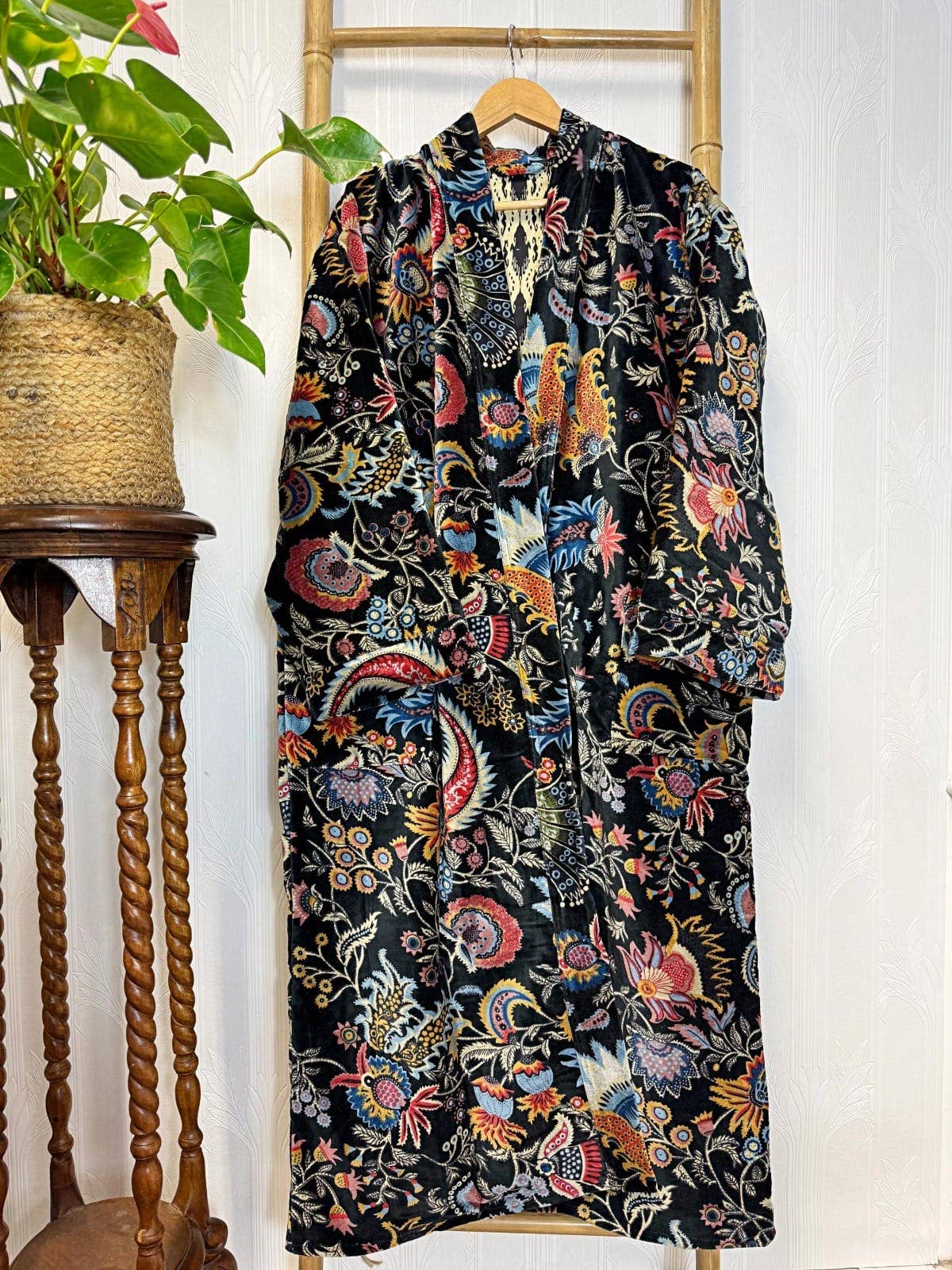 Black Luxurious Printed Velvet Robe, fully lined