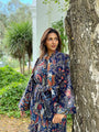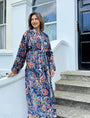 Deep Blue Luxurious Printed Velvet Robe, fully lined