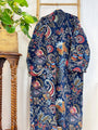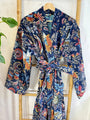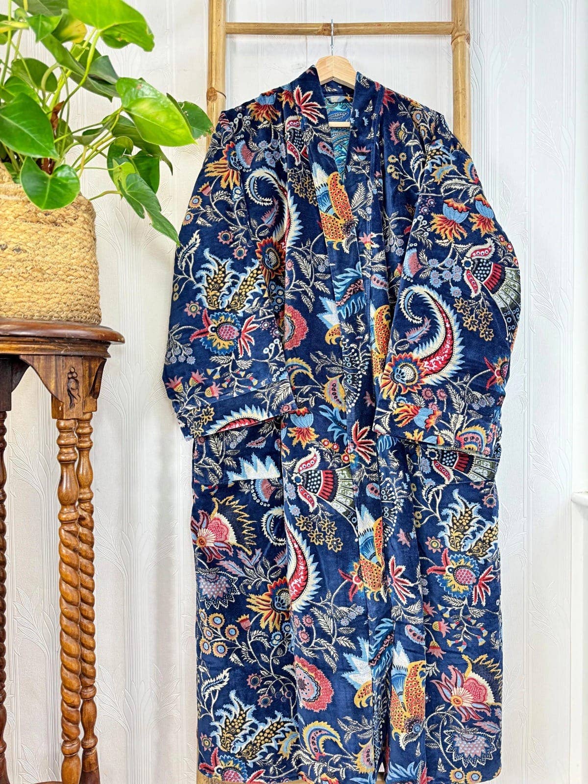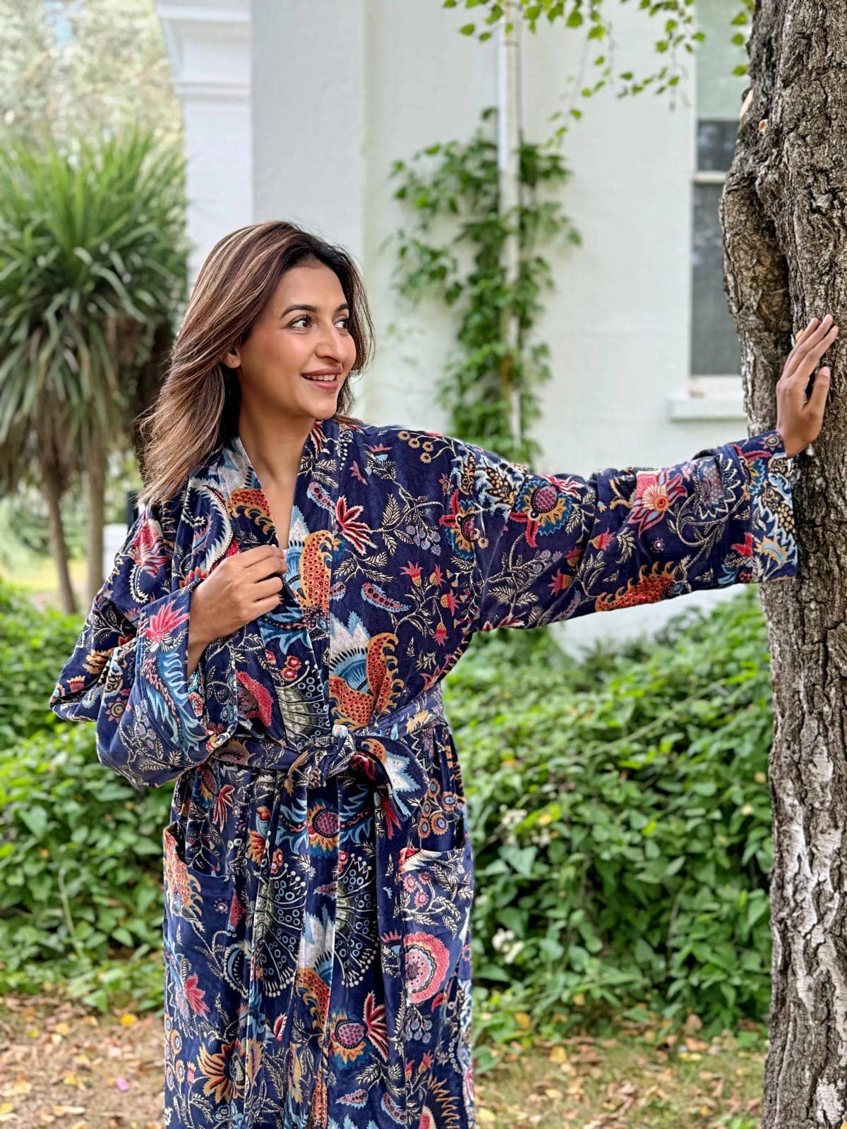 Deep Blue Luxurious Printed Velvet Robe, fully lined - Default Title