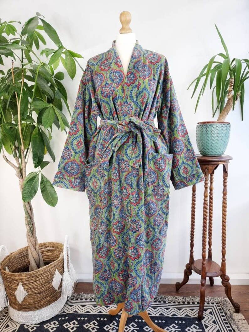 Luscious Luxurious Printed Velvet Robe with Indian Sari Lining.