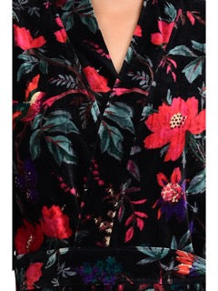 Indulge in the luscious luxury of our printed velvet robe, featuring a soft Silk lining. With its reversible design, you can choose between the stunning outer print or the comforting feel of the lining against your skin. Perfect for autumn and winter, this dressy robe is also a great choice for unpredictable cold weather.