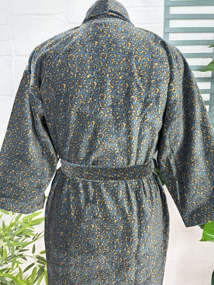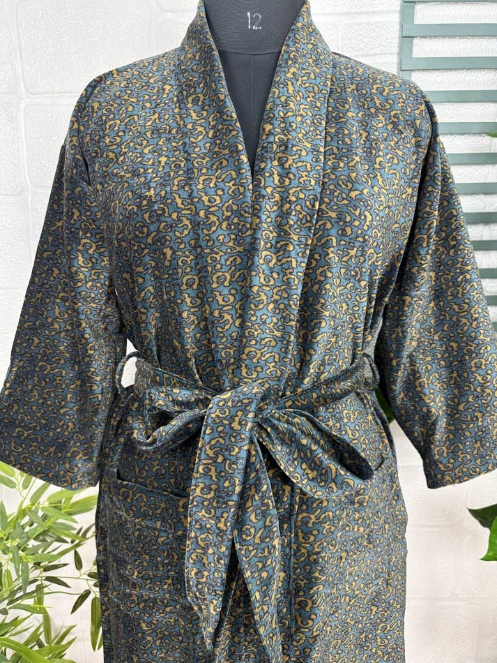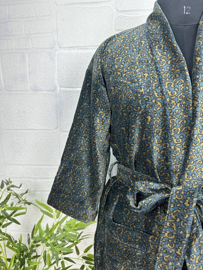 Indulge in the luscious luxury of our printed velvet robe, featuring a soft Silk lining.