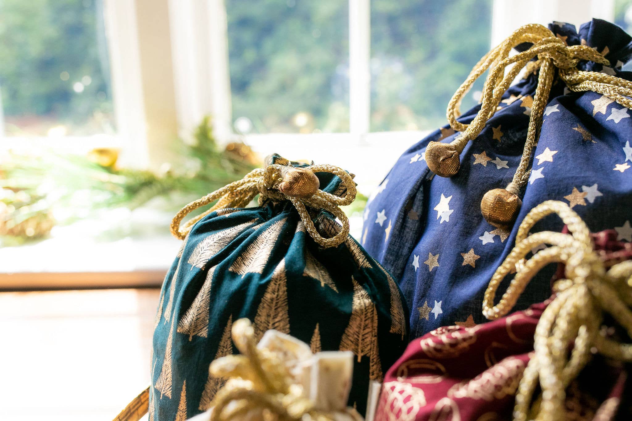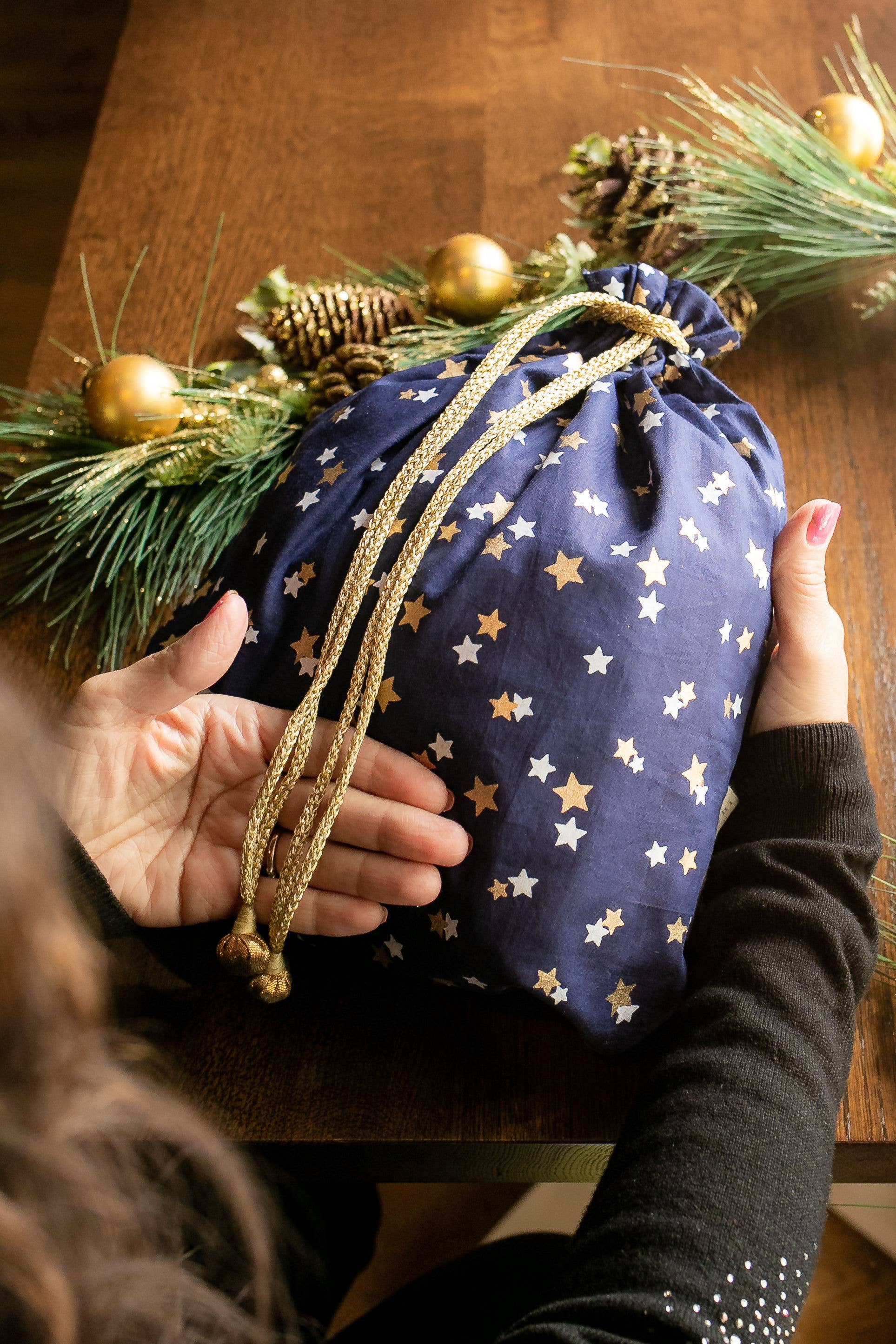 Embrace a zero-waste and time-efficient gift packaging option with our stylish artisan-made fabric gift bags.