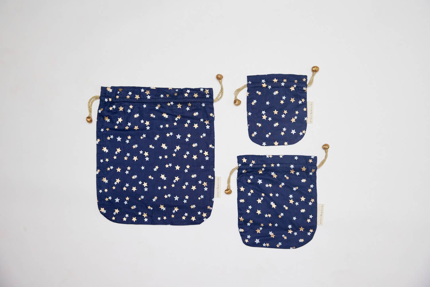 All our drawstring bags are adorned with a decorative fabric bead at both ends.