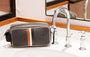 Men toiletry bagin Gray Red White Blue fabric and leather