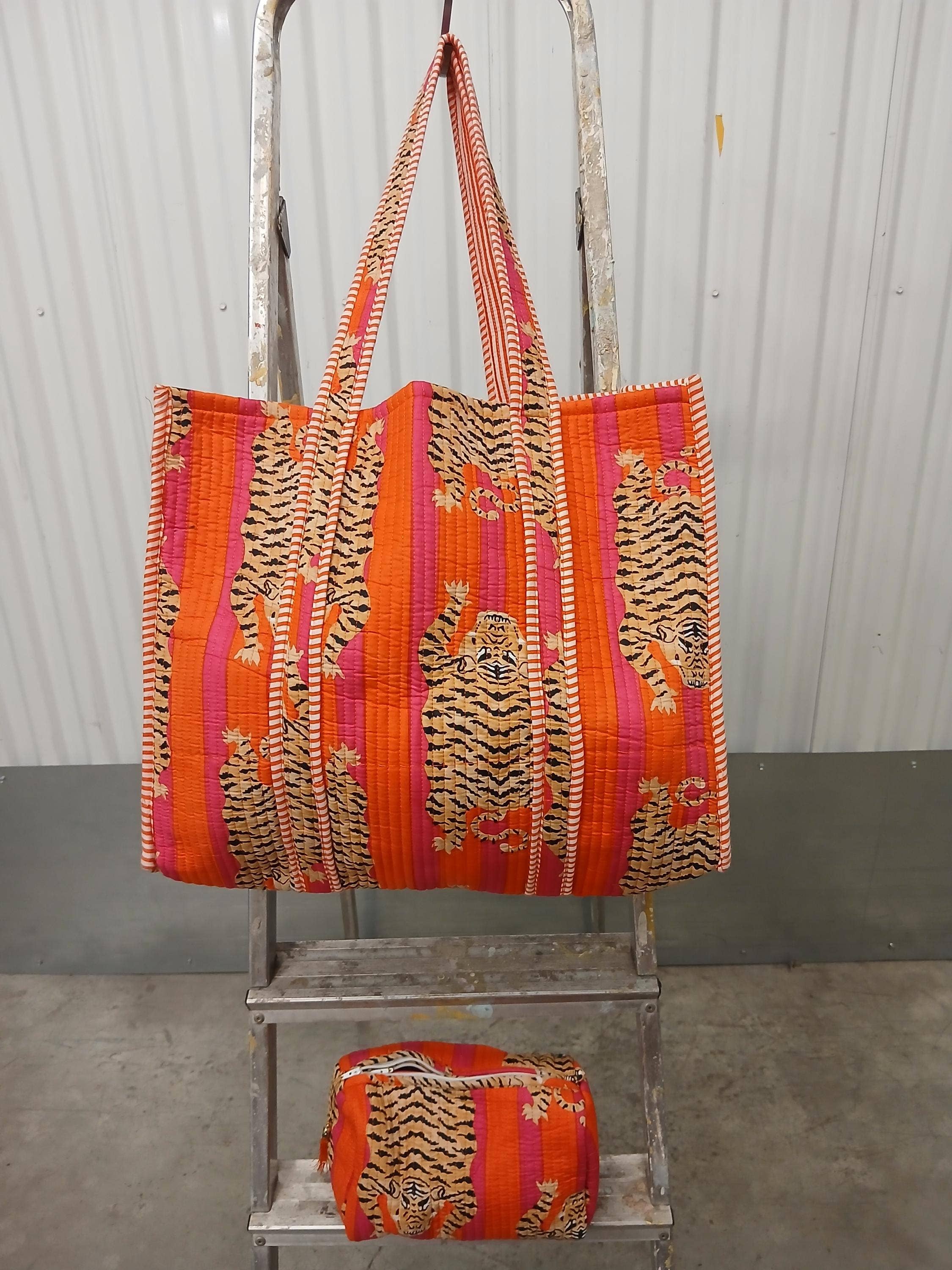 Extra Large, 100% Cotton Tiger Print Kantha Quilted Tote, Shopping Bag