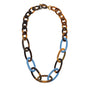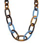 Oval link Buffalo horn necklace - Light blue/Brown