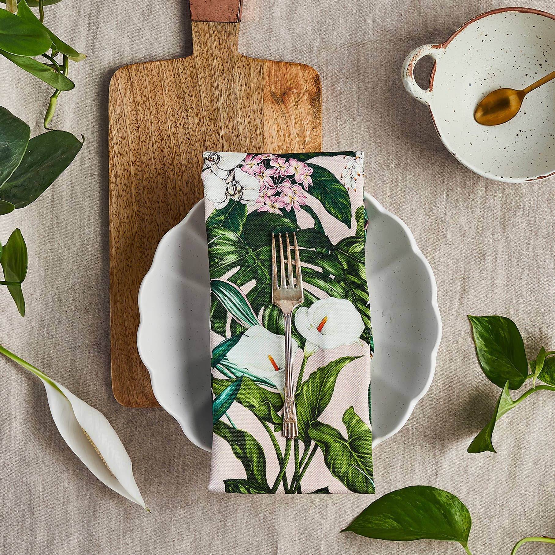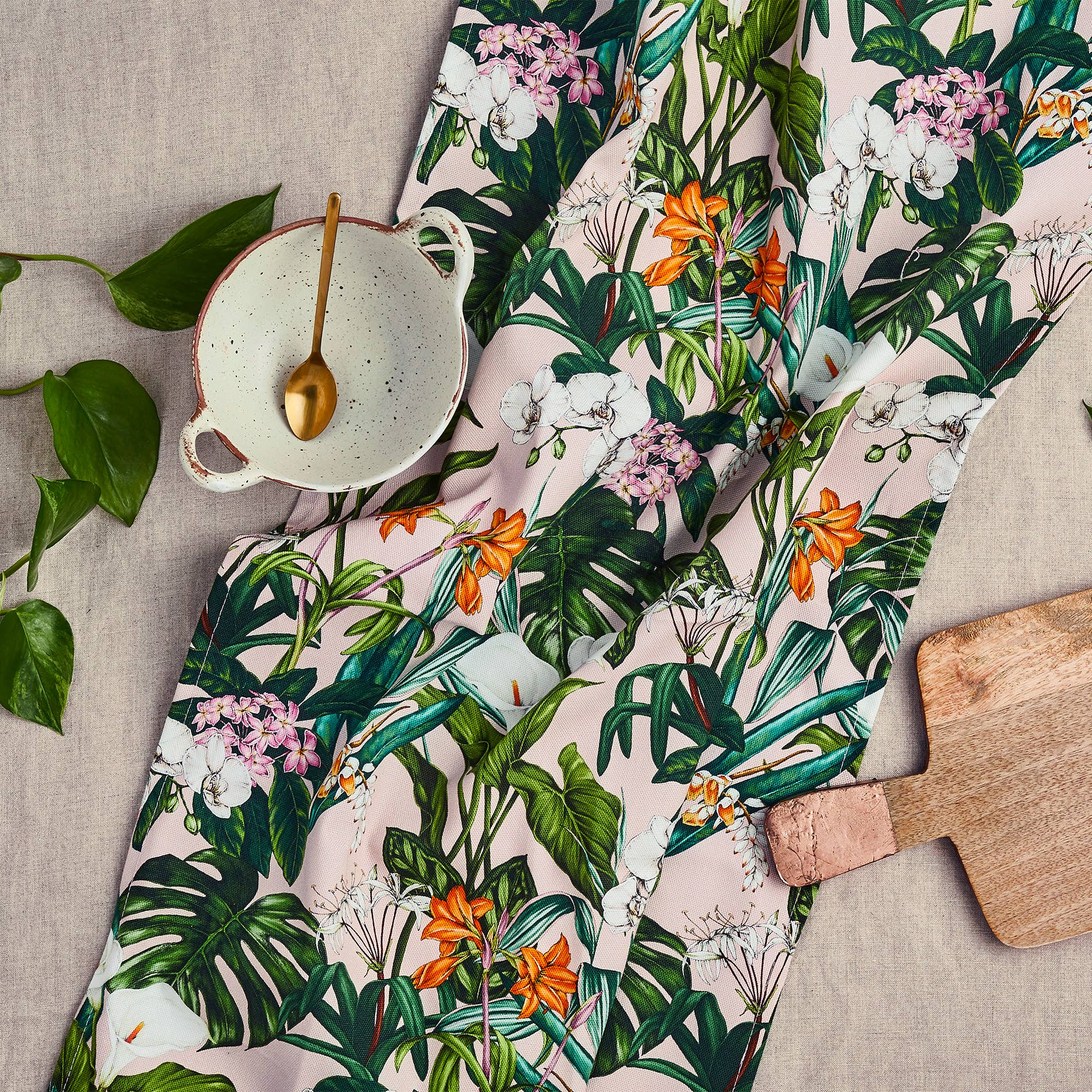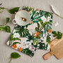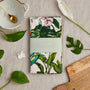 Luxury 'Palm House Tropics' Tea Towel on a pink base, printed and made in the UK on 100% Organic Cotton.