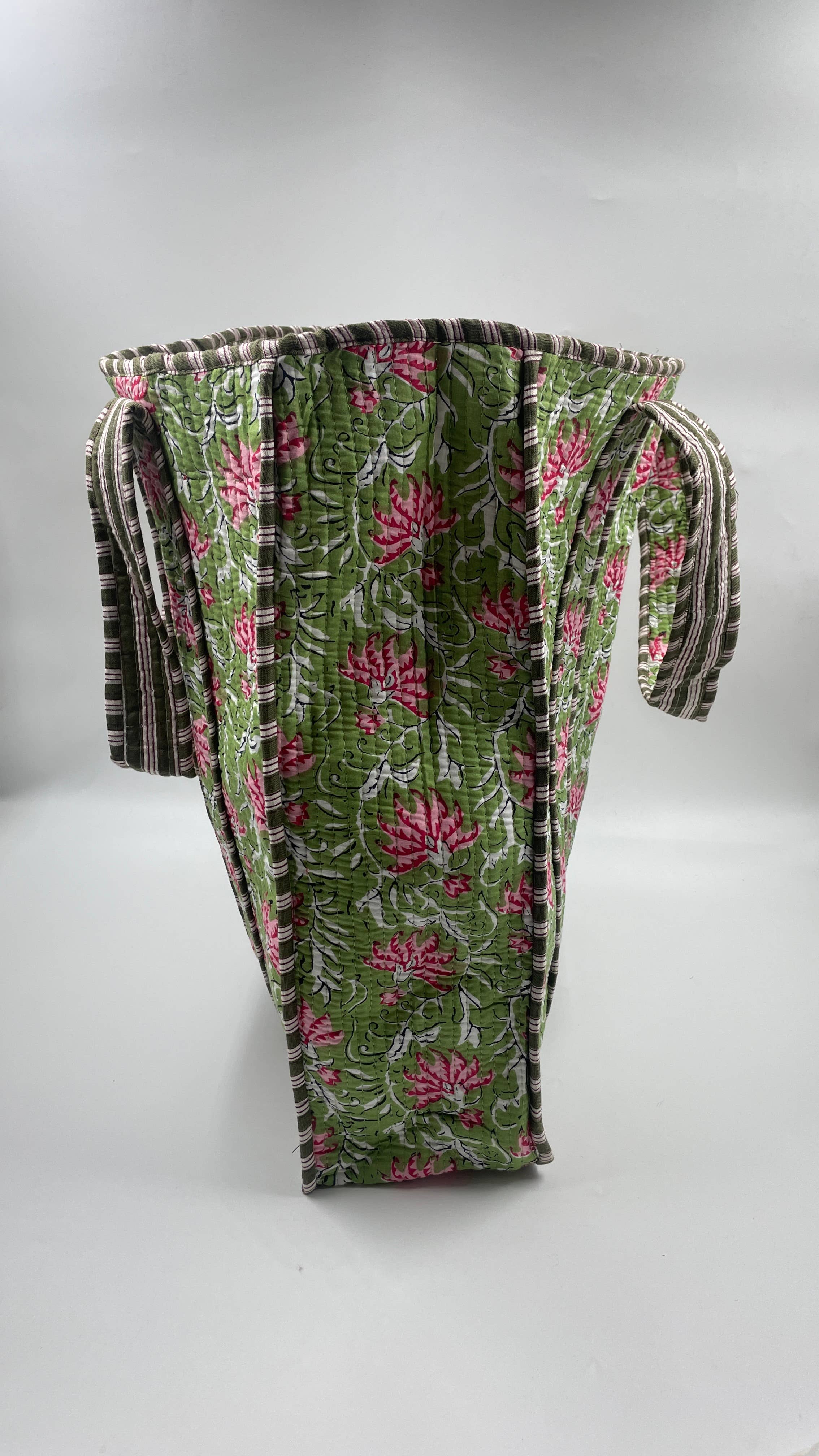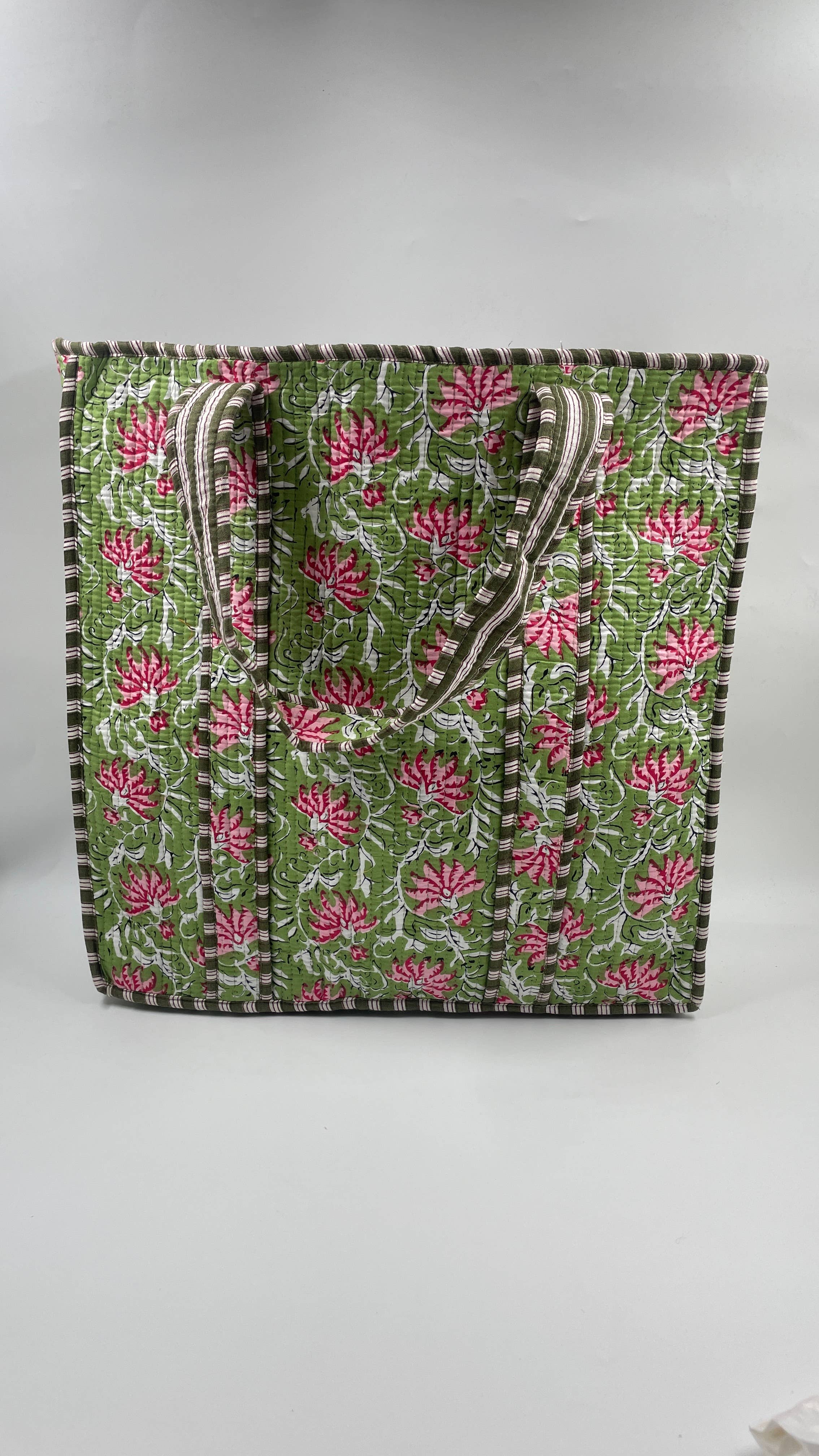 Pink & Green Cotton Kantha Quilted Tote Bag