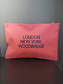 Witty yet practical gift, our own design ' London, New York, Woodbridge' pouches make excellent handbag tidies, makeup or wash bags