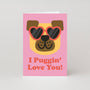 Bold, colourful and with a big pug face? What more could a Valentine's Day card need - other than a brilliant pun caption? "I puggin' love you!" reads this hilarious pug Valentine's day card, with the dog in question wearing a stylish pair of heart-shaped sunglasses to finish off the design. The inside of the dog Valentine's day card is blank, ready for any extra puns or love notes.