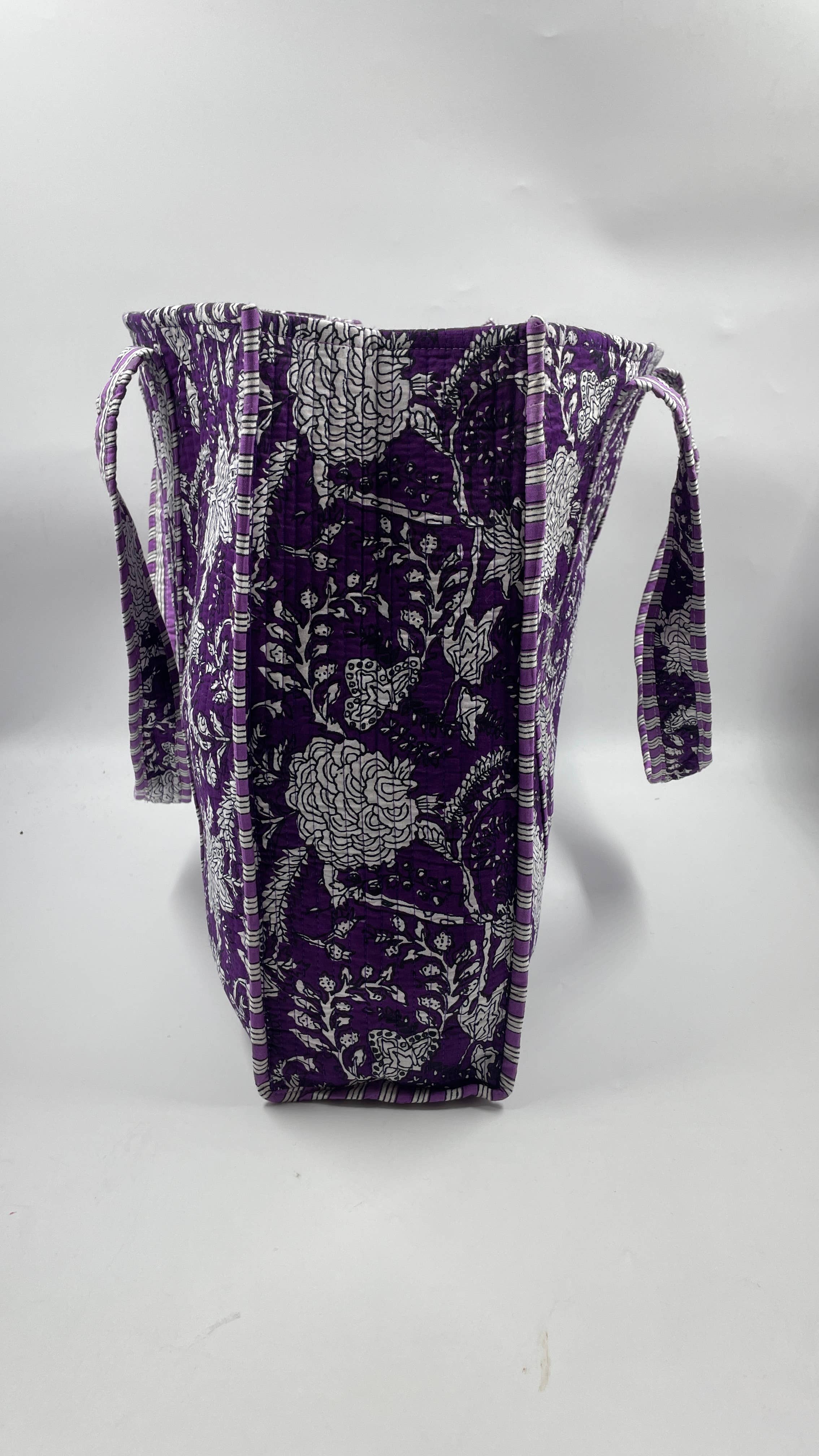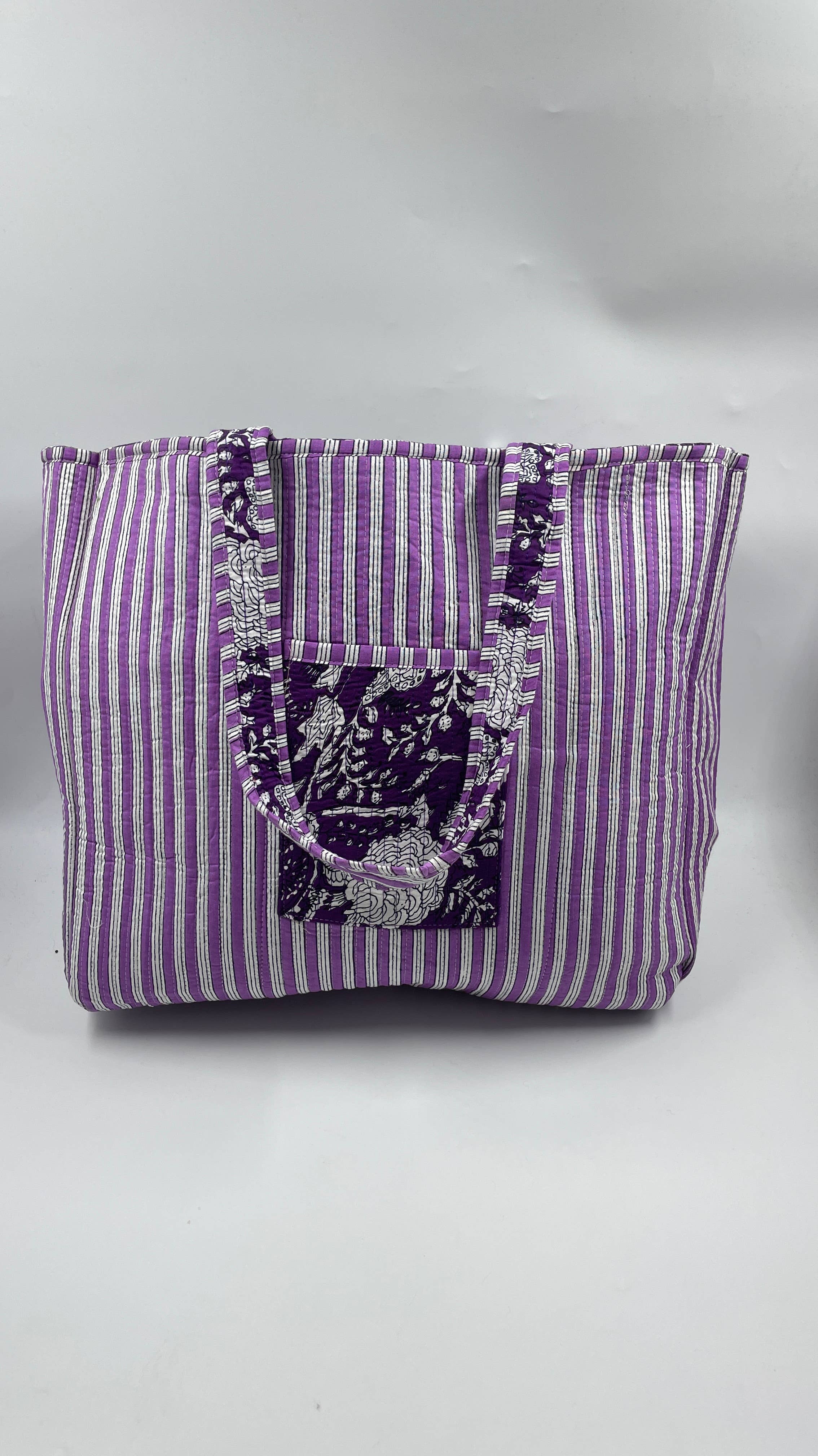 Purple Floral Cotton Quilted Tote Bag - Default Title