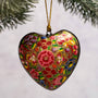 A stunning Kashmiri floral designed, hand painted, hand-crafted paper mache decoration, measuring approximately 7cm in diameter.