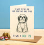 Shih Tzu card. One of the most popular cards we have ever made! This Shih Tzu card always makes people laugh, and appeals to anyone with a brilliant sense of humour! Blank inside, it can be used for any occasion.