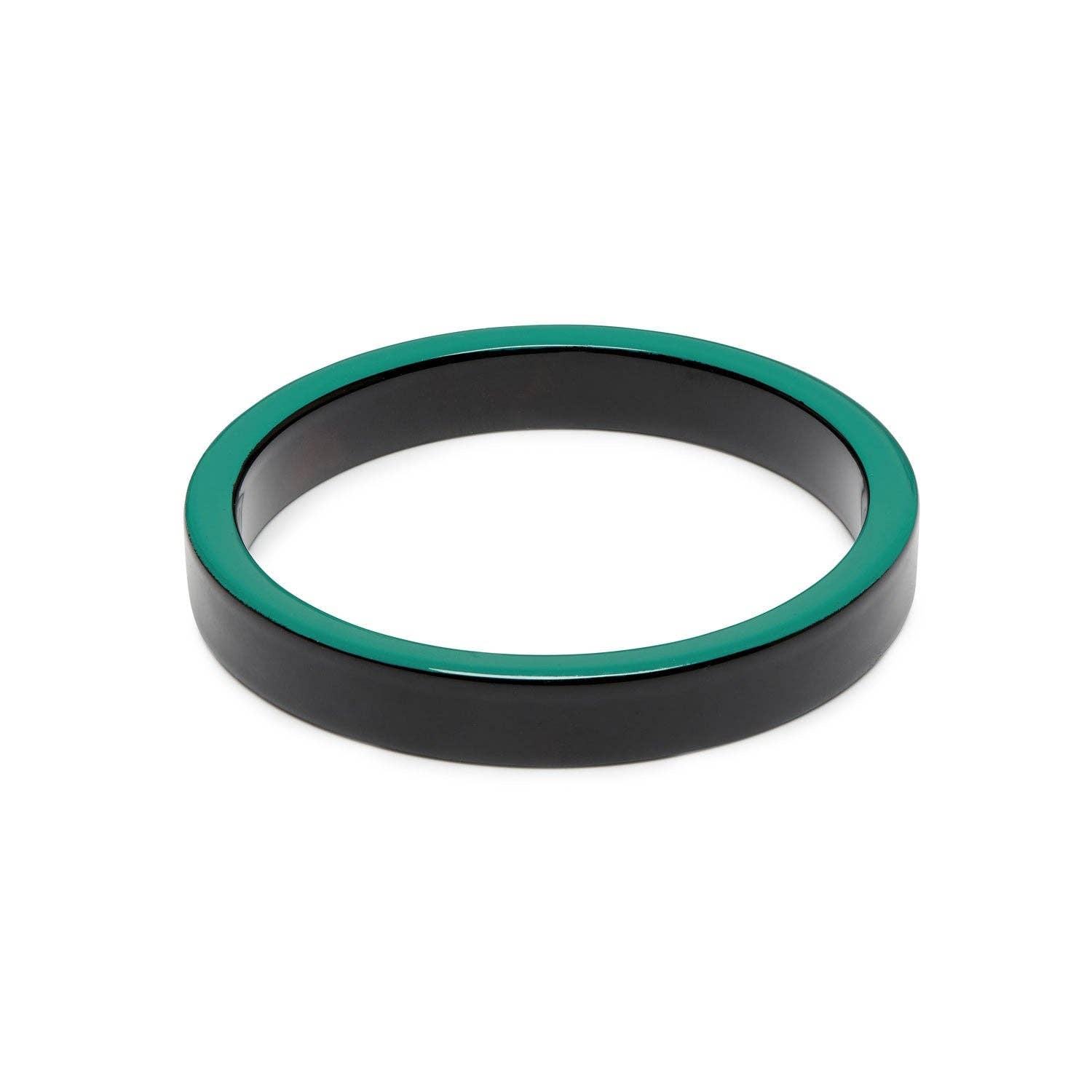 Lacquered with a smooth teal lacquer on the rim and combined with black natural buffalo horn on the outside and inside. This lovely natural buffalo horn bangle is a gorgeous understated piece, really lightweight, so extremely comfortable to wear and will look great worn alone or combined with other bangles.