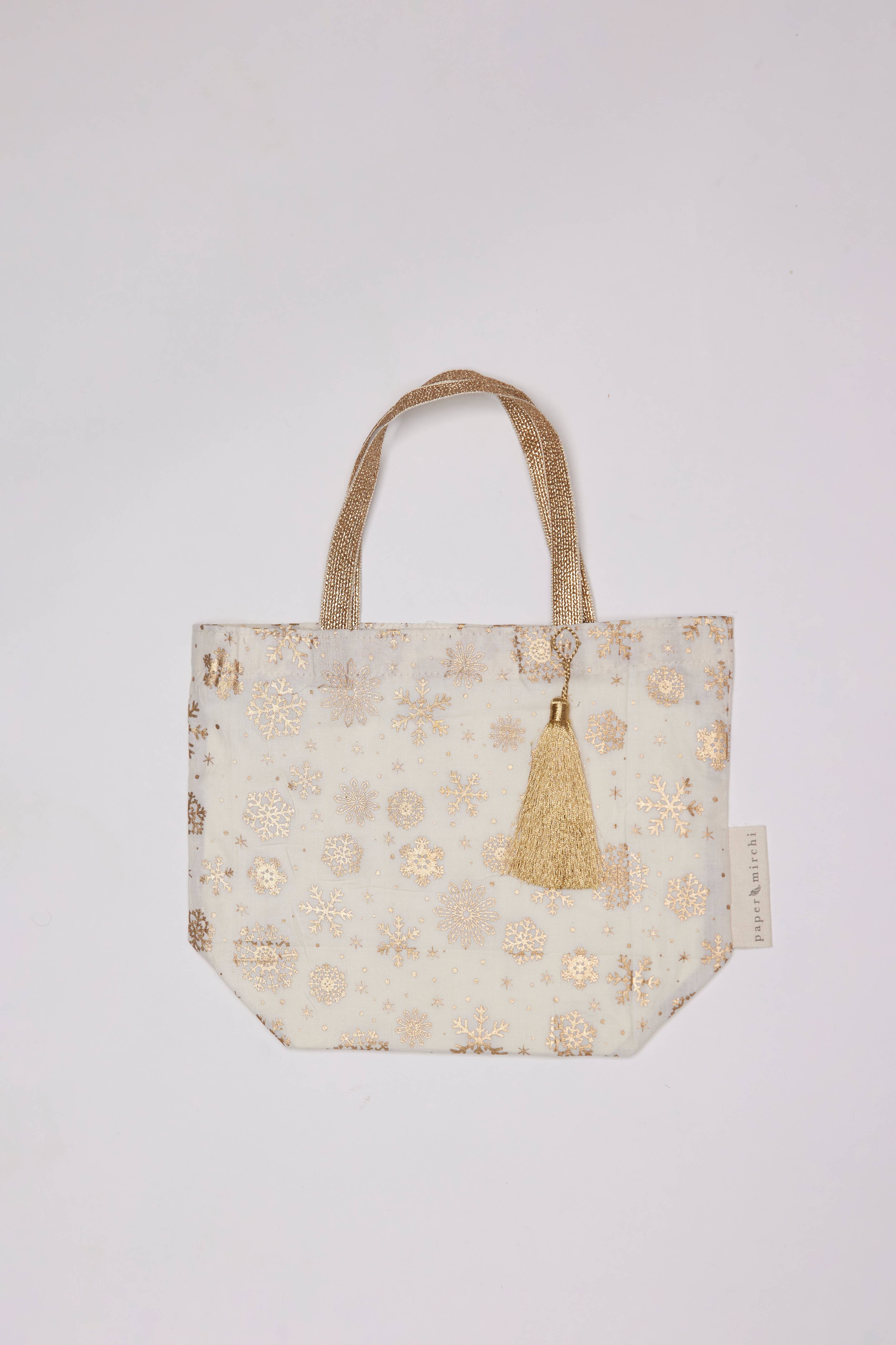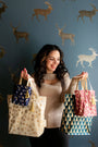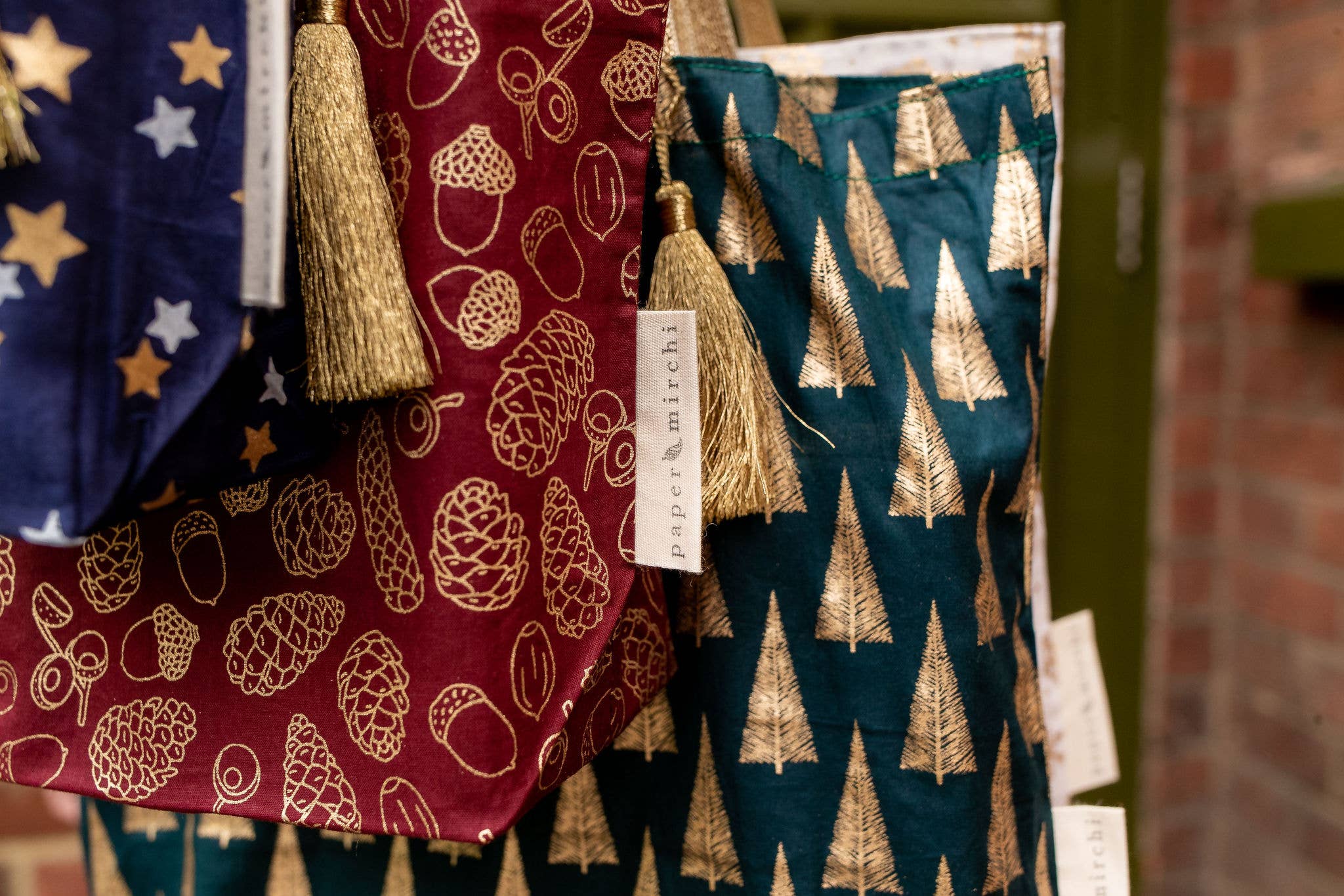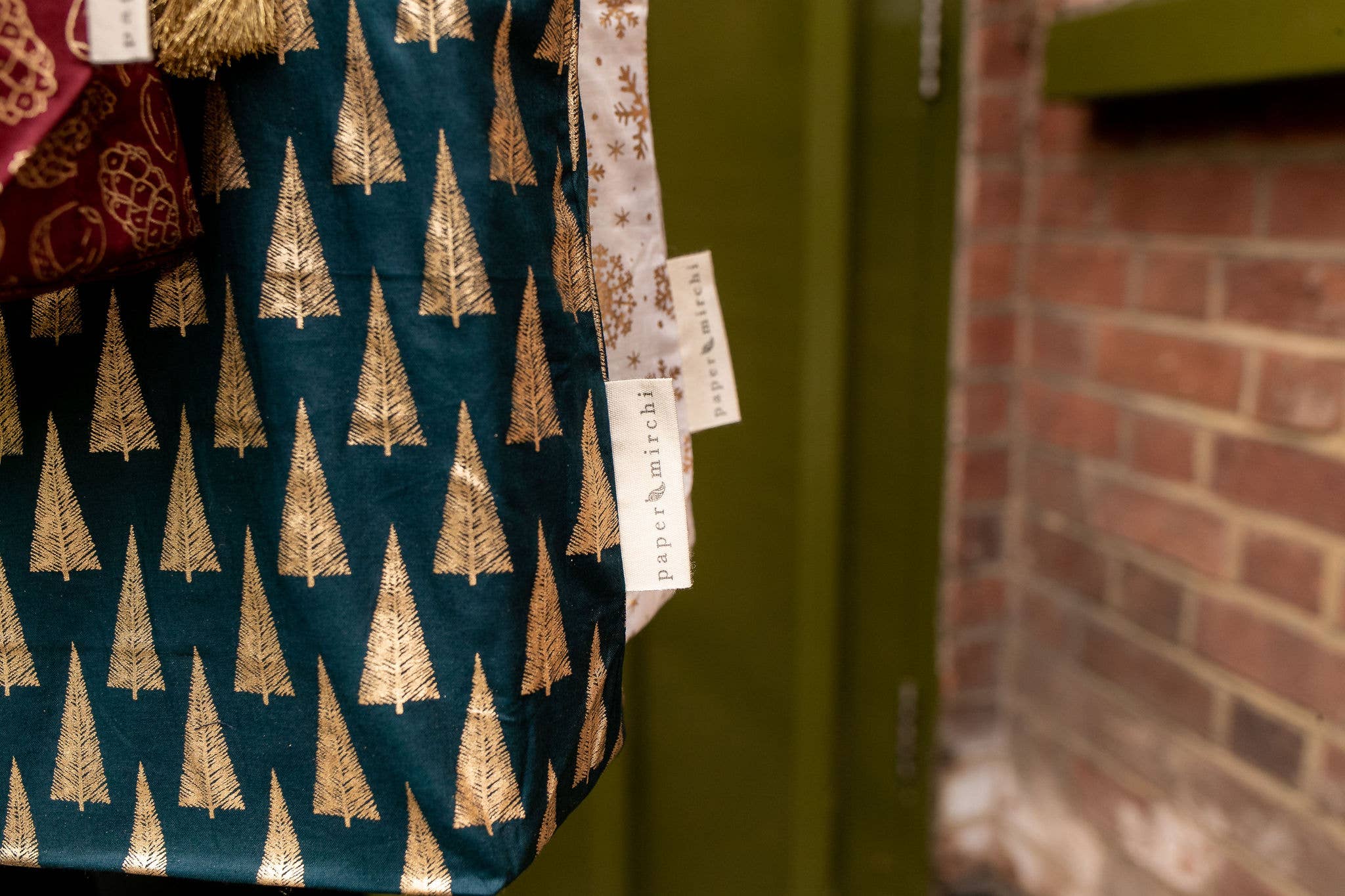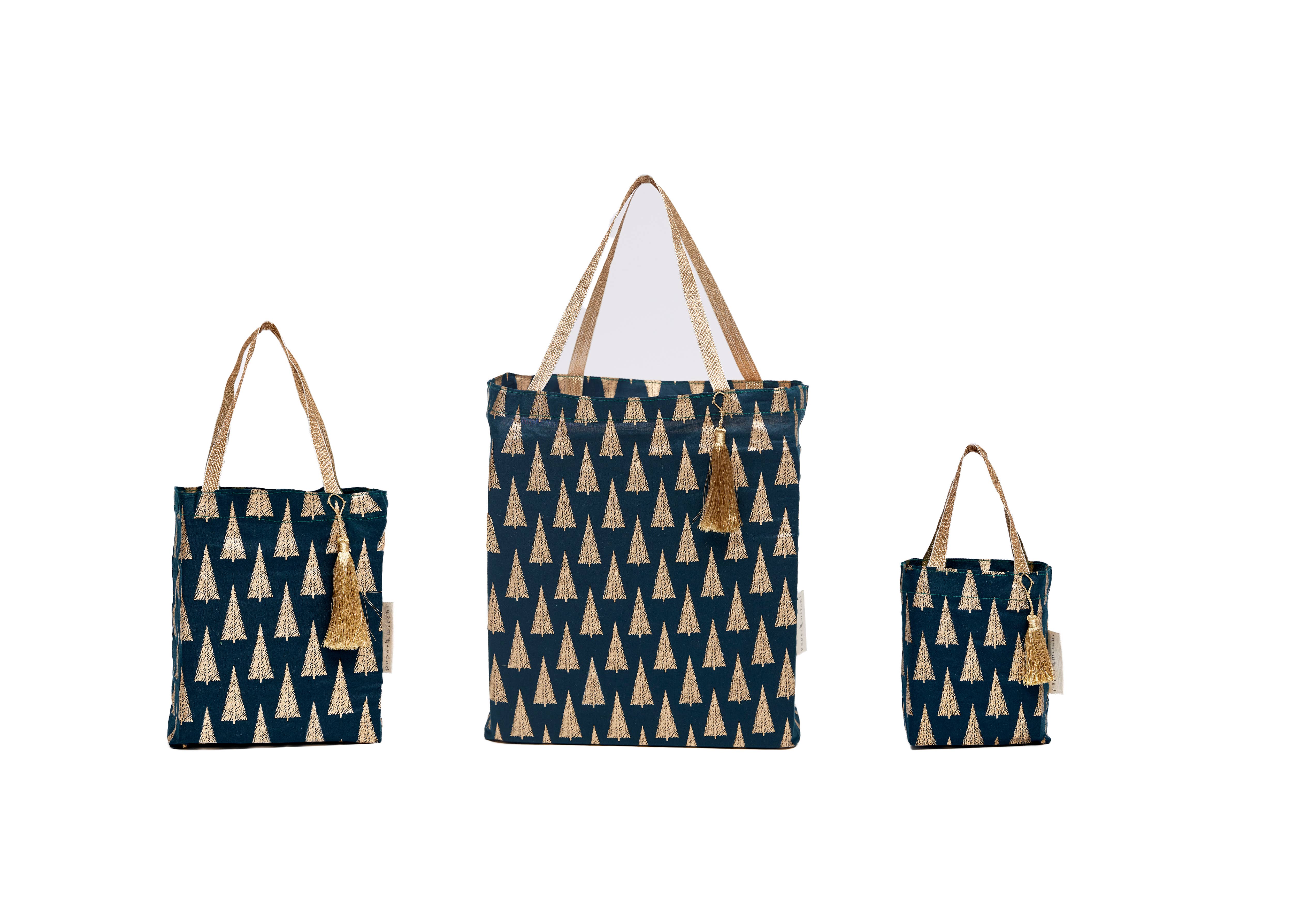 Our Christmas Collection of fabric gift bags is available in a selection of four Paper Mirchi exclusive designs in festive colours.